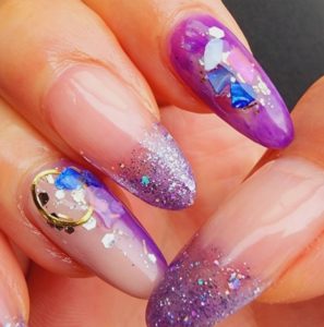 華やかなパーティーやイベントには、グリッターやメタリックの派手なデザインが最適です。
